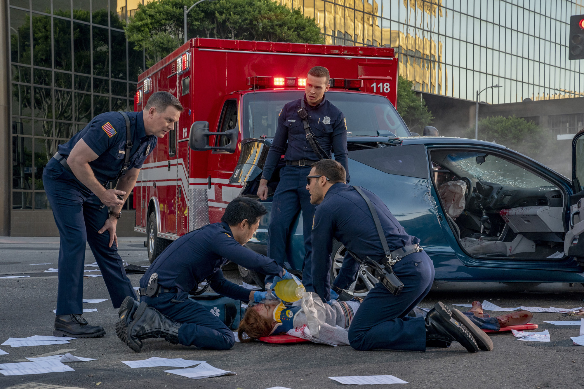 Cast: Angela Bassett as Athena Grant; Peter Krause as Bobby Nash; Jennifer Love Hewitt as Maddie Kendall; Oliver Stark as Evan “Buck” Buckley; Kenneth Choi as Howie “Chimney” Han; Aisha Hinds as Henrietta “Hen” Wilson; Ryan Guzman as Eddie Diaz; Rockmond Dunbar as Michael Grant; Corinne Massiah as May Grant; Marcanthonee Jon Reis as Harry Grant; Gavin McHugh as Christopher Diaz.