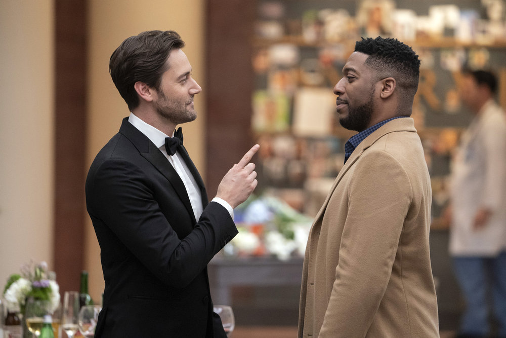 The night ends with a toast to Dr. Reynolds (Jocko Sims), who will take his last laps at New Amsterdam at the end of the evening.